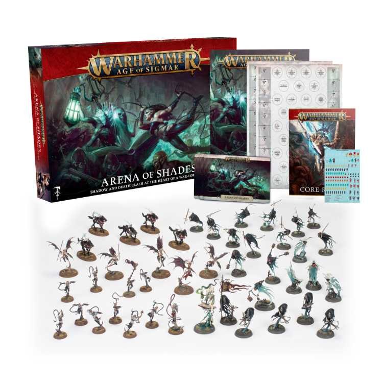 The Arena of Shades booklet tells the story of the struggle for Har Kuron's souls, as the Daughters of Khaine dash forth from their gladiatorial pits to push back the invading Nighthaunt. You'll find lore for the Charrwind Coast, rules for fighting in the streets and tunnels of the benighted city, plus warscrolls for all included units and a campaign of three new battleplans for use in open play and narrative games of Warhammer Age of Sigmar.