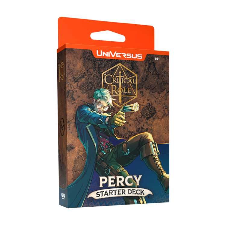 The beloved tabletop roleplaying sensation Critical Role returns to UniVersus with this pair of Heroes of Exandria Starter Decks! Featuring the deadly inventor PERCY, this Starter Deck contains 61 cards (60 cards + 1 character card), and a double-sided paper playmat with learn-to-play instructions!