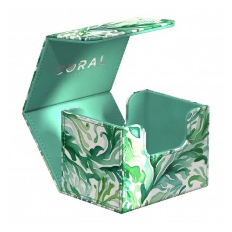Dive into flourishing underwater worlds with the 2025 Exclusive Sidewinders from Ultimate Guard! The sustainable Coral Places deck boxes are made from 52% recycled materials and, in addition to the durable Xenoskin surface, have a strong magnetic closure and a high-quality microfibre inner lining so that up to 100 (double-sleeved) or 120 (single-sleeved) cards from games such as Magic: The Gathering, Pokémon, Lorcana, One Piece or Yu-Gi-Oh! can be stored safely. The plastic-free packaging is also made entirely from recycled paper and cellulose-based film.